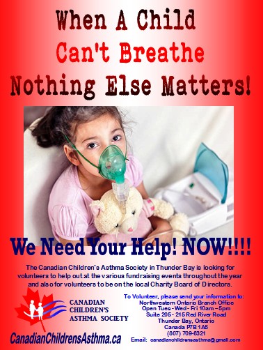 The Canadian Children's Asthma Society is a Registered Canadian Charity. The Society`s Mission is to help educate children who have been diagnosed with Asthma on how to cope with their breathing by proper use of medication, living a healthy life style, and providing counselling services. The Society also provides education about Asthma to the general public through this website, Facebook page and to community Asthma clinics open to the public. All of the programs and services are provided at no cost or fees to the participants and those that will benefit from the programs and services. The programs are funded by community and national donations, and by various government grants.